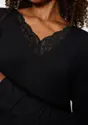 Rilassati dopo una lunga giornata con un elegante abbigliamento da notte che ti celebra. Il tessuto morbido e traspirante ti accompagnerà con eleganza in un sonno confortevole.- Camicia da notte a maniche lunghe con lunghezza sotto al ginocchio dalla vestibilità comoda, che valorizza le forme