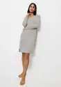 Rilassati dopo una lunga giornata con un elegante abbigliamento da notte che ti celebra. Il tessuto morbido e traspirante ti accompagnerà con eleganza in un sonno confortevole.- Camicia da notte a maniche lunghe con lunghezza sotto al ginocchio dalla vestibilità comoda, che valorizza le forme