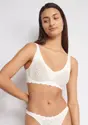 Questo reggiseno ZERO Feel Bliss Soft combina il comfort invisibile e senza cuciture della serie ZERO Feel con il romanticismo del pizzo grafico elasticizzato a 360°. Il bordo ondulato tagliato a vivo si adatta bene alla pelle, mentre le imbottiture rimovibili permettono di cambiare la silhouette.- Reggiseno senza ferretto con coppe imbottite