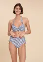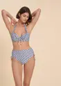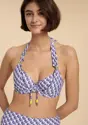 Forza, in acqua! Il bikini allacciato al collo «KAIRI» incanta con una stampa di conchiglie realizzata a mano con acquerelli dalla nostra stilista di Beldona Jana. B.AWARE: realizzata in materiale riciclato.- Coppa preformata con ferretto